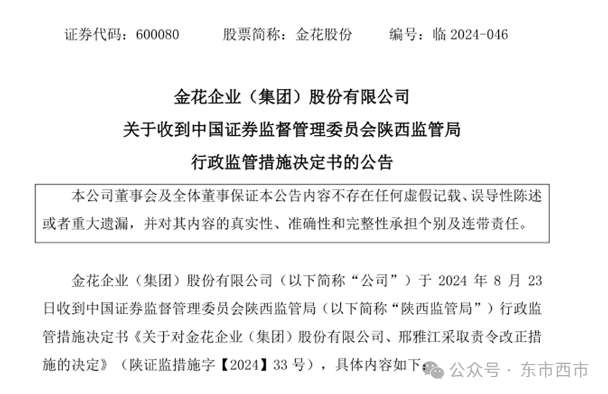 近日,因“瞒报”董事长取保候审事件,金花股份(维权)被陕西证监局下发行政监管措施决定书。